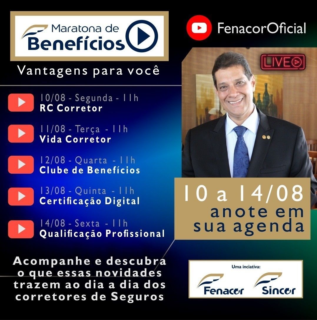 Anote os horários indicados acima e confira em nosso canal: https://www.youtube.com/FenacorOficial