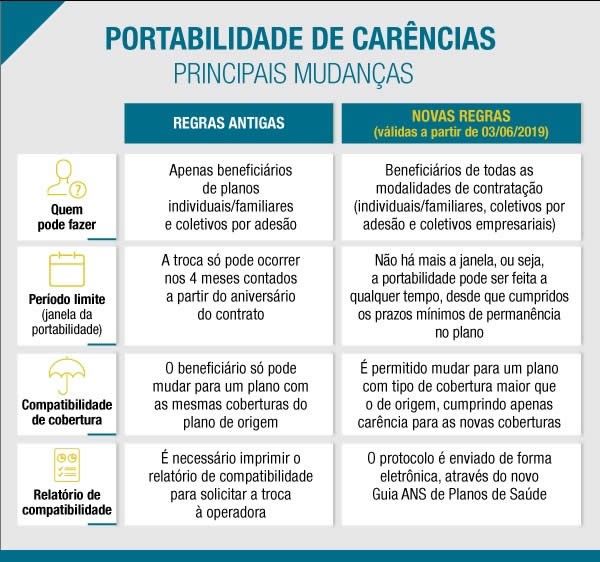 O fim da janela para a realização da portabilidade de carências é uma das novidades da normativa. Agora, o mecanismo poderá ser requerido pelo beneficiário a qualquer tempo, desde que haja o cumprimento do prazo mínimo de permanência exigido no plano de origem. Antes, havia um período limitado a 4 meses no ano para o exercício da portabilidade, contados da data de aniversário do contrato.